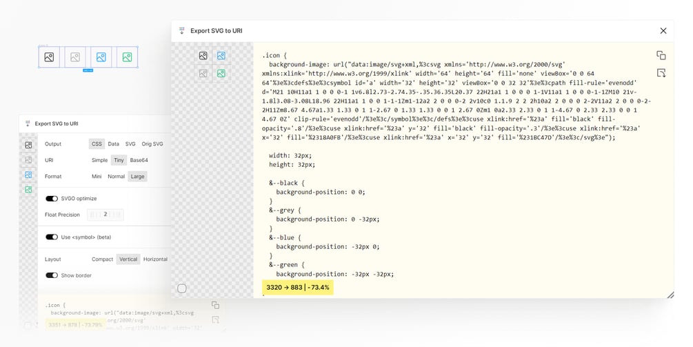 3. The «Use symbols» option is available (when exporting the same icons, it can significantly reduce the size of the svg).